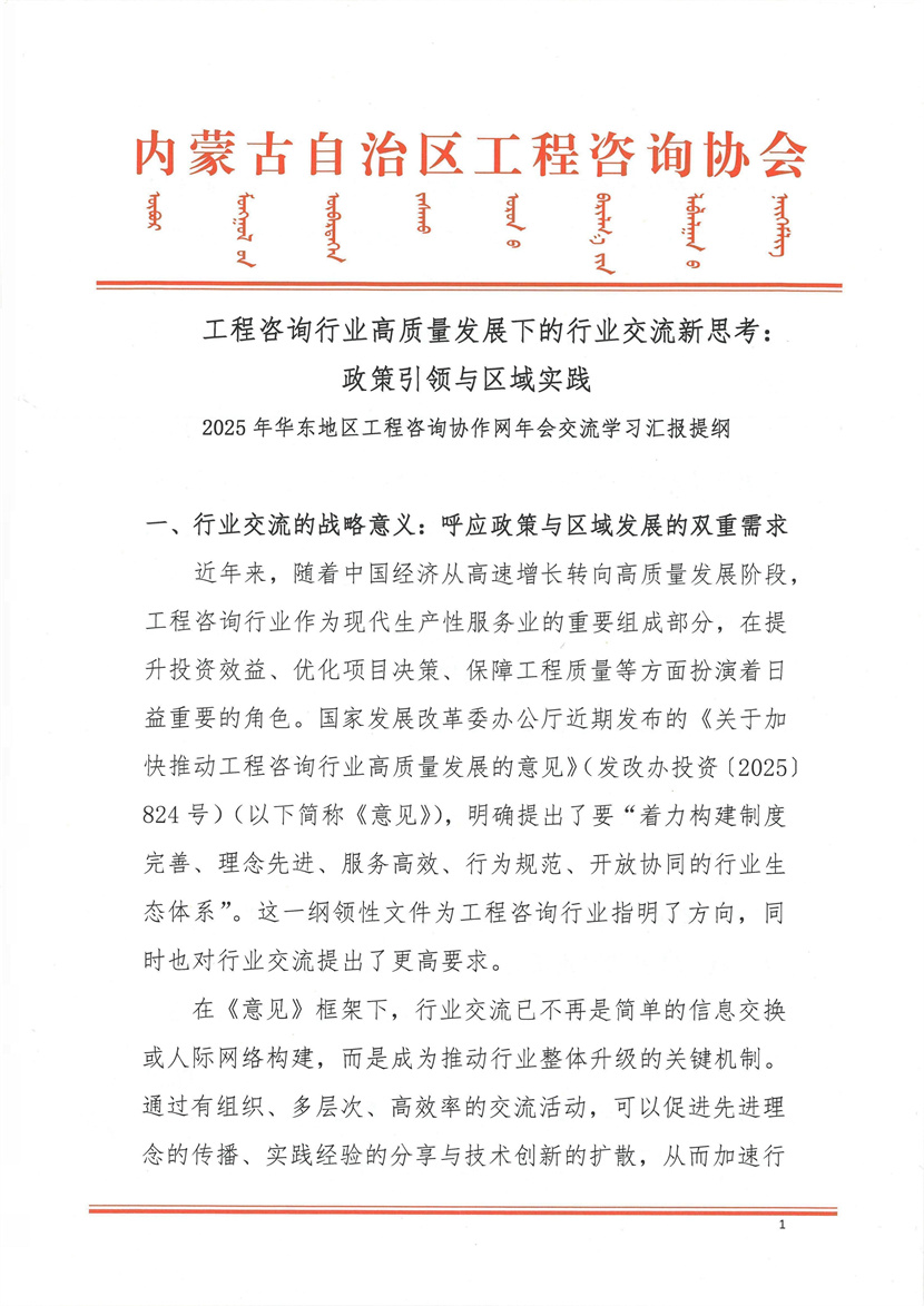 2025年华东地区工程咨询协作网年会交流学习汇报提纲