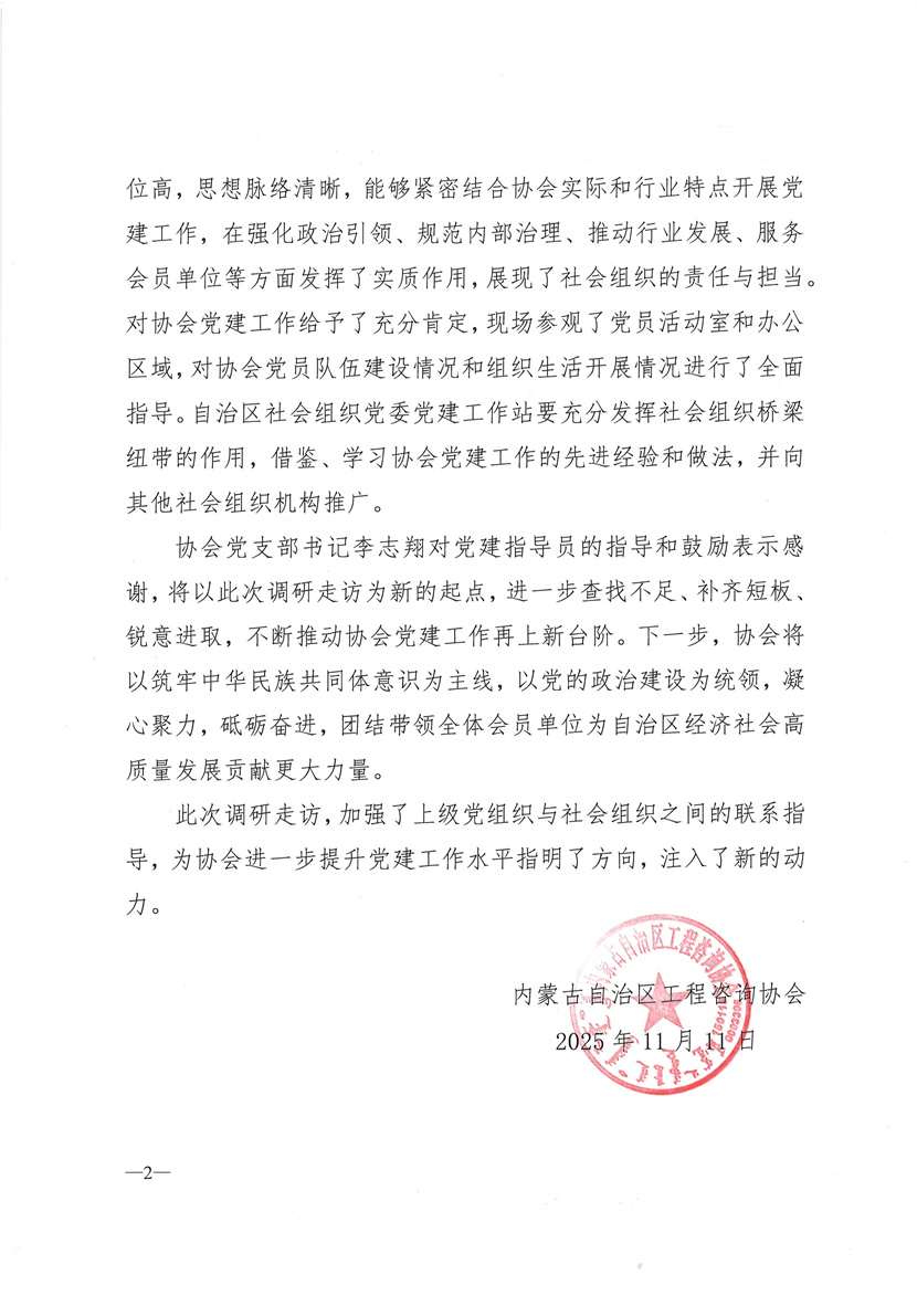 党建引领聚合力 调研赋能促提升——社会组织党建指导员调研走访内蒙古自治区工程咨询协会党建工作